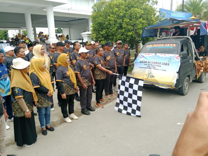 TPost — Wakil Bupati Halmahera Tengah, Maluku Utara, Ahlan Djumadil melepas iring-iringan peserta karnaval dan kirab budaya dalam rangka memeriahkan hari ulang tahun (HUT) ke-35 Kabupaten Halmahera Tengah, Selasa (28/10/2025).