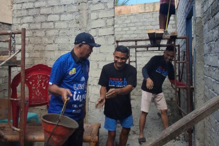 Dalam kegiatan gotong royong tersebut, Nasri tampak membaur bersama masyarakat tanpa sekat jabatan. Ia ikut serta dalam proses pengecoran beton pada struktur atas dinding rumah, sebuah langkah teknis untuk memastikan bangunan lebih kokoh dan aman bagi penghuninya di masa depan.
