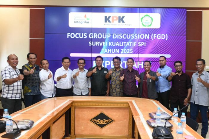 TPost — Satuan Pengawas Internal Universitas Khairun (Unkhair) Ternate bekerja sama dengan Komisi Pemberantasan Korupsi (KPK) menggelar focus group discussion (FGD) Survei Penilaian Integritas (SPI) Tahun 2025 di ruang Senat Fakultas Ekonomi dan Bisnis Unkhair, Kamis (6/11/2025).